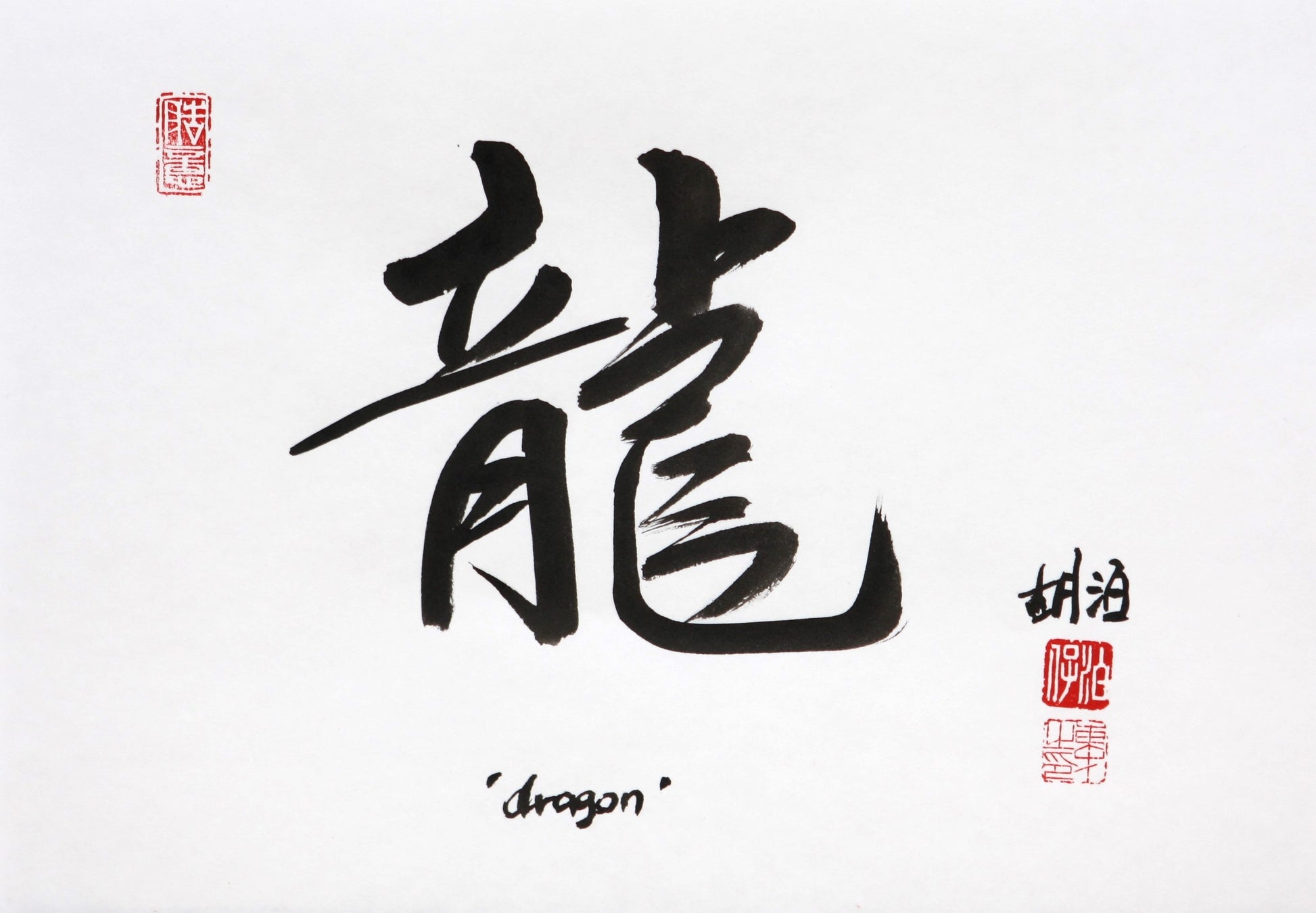Texte : traduction chinoise de "Dragon", avec légende en anglais